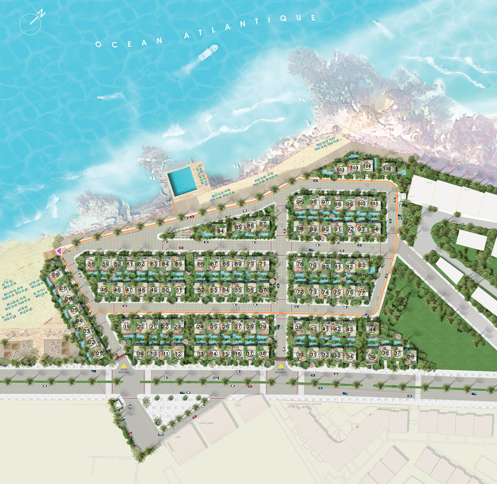 Jack Beach Dar Bouazza est un projet prestigieux caractérisé par sa végétation verdoyante, il se situe en première ligne sur la fameuse baie de Jack Beach (plages privées). Situé à seulement 15 min du Morocco Mall, Jack Beach Dar Bouazza est un projet de 105 villas pieds dans l’eau.